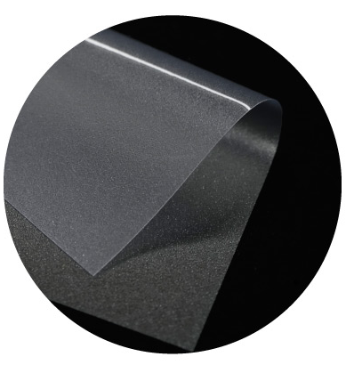 PVCは、柔軟性に優れた素材なので、「つや加工」を施せるだけでなく、薄いシート状であるにも関わらず折れても跡がつきにくいといった性質があります。
